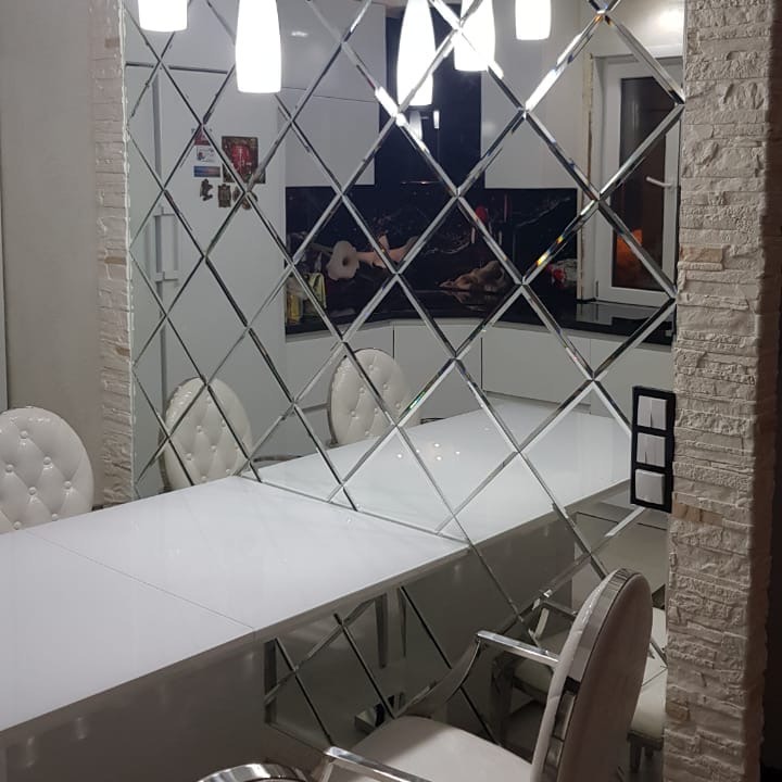 Использована зеркальная квадратная плитка с фацетом.