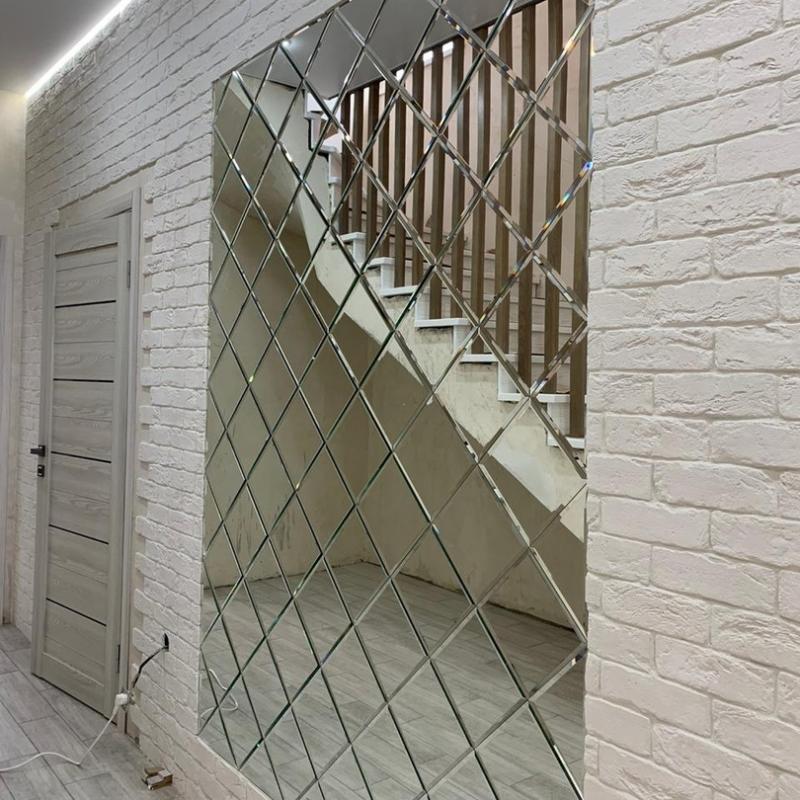 Использована серебряная квадратная зеркальная плитка 18х18.
