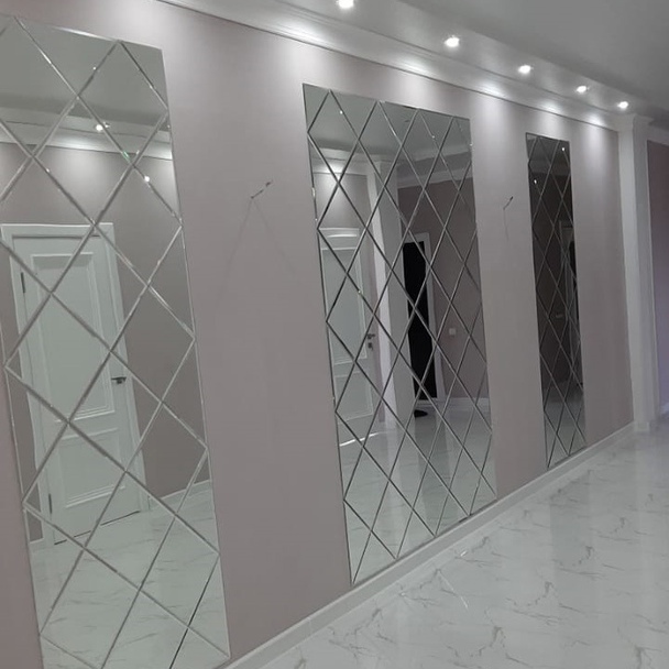 Использована серебряная квадратная зеркальная плитка 18х18.